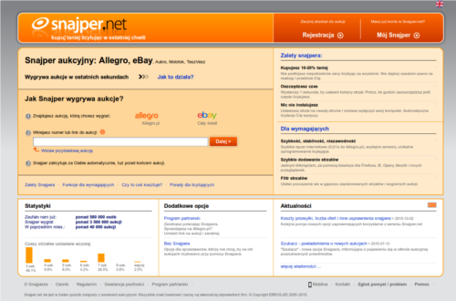Zajmujemy się technologiami internetowymi od 2002 r. Obecnie skupiamy się przede wszystkim na tworzeniu i rozwijaniu autorskich serwisów internetowych, do których należą: snajper aukcyjny Snajper.net, livechat do komunikacji z klientami: Czater.pl, narzędzia dla sprzedawców Allegro i eBay: PaneleAllegro.pl, GalerieAllegro.pl, czy wyszukiwarka usług fotograficznych: FotoSzukacz.pl. Zapraszamy do zapoznania się ze szczegółowym portfolio.